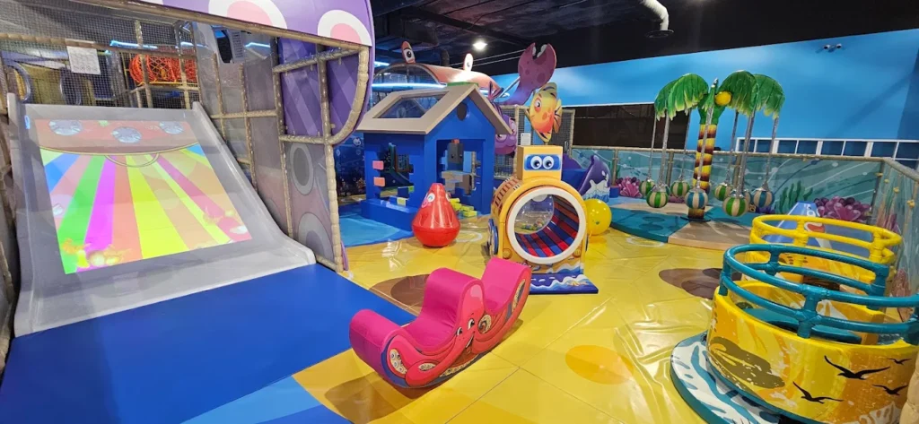 We Play Loud Lake Forest focuses on active play. Kids climb through play structures, take slides, and move through obstacle-style features. Many kids repeat the same routes over and over. That repetition keeps them engaged. It also helps them burn energy fast. The setup usually supports both free play and group play. Parents typically stay close and supervise while kids explore.